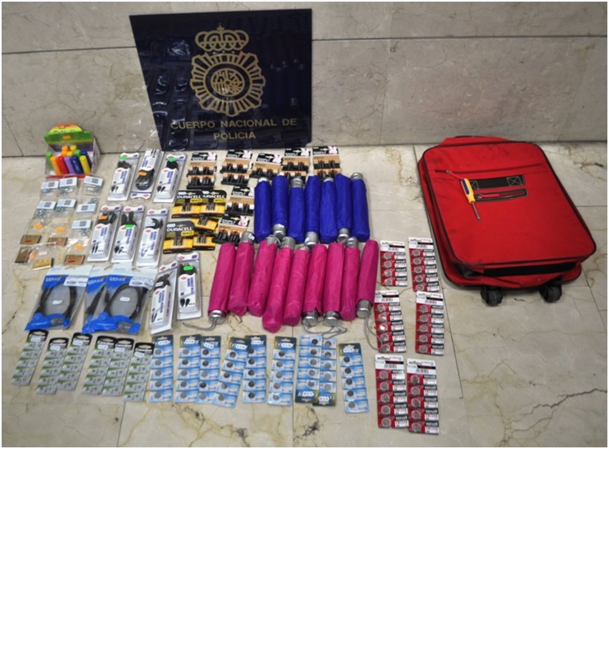 Fue detenido de forma inmediata y se comprobó que dentro de la maleta había productos como paraguas, cables, pilas, barras de cacao o tornillos, todos ellos artículos de venta en el local forzado.
