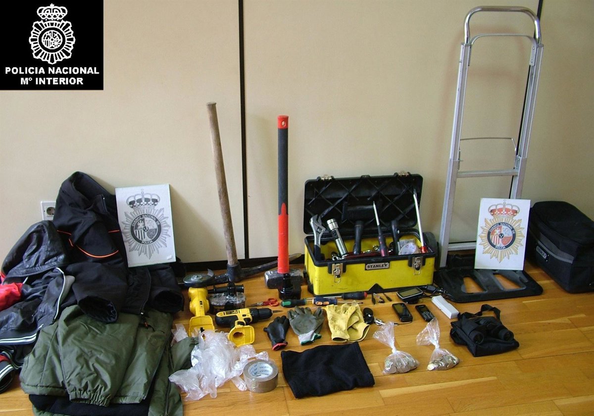 En el interior de la furgoneta que utilizaban, propiedad de uno de ellos, se intervinieron numerosas herramientas empleadas presumiblemente para la comisión de robos con fuerza (radial, pico, maza, taladros, linterna para colocar en la frente, juegos de galgas, cinceles o cortafríos, prismáticos), así como guantes y gran cantidad de dinero en monedas fraccionadas, un carro plegable muy útil para transporte de las pesadas cajas fuertes (al contener monedas recaudadas) de los vehículos y aparatos electrónicos como navegador GPS, etc., que empleaban en la comisión de los hechos delictivos.
