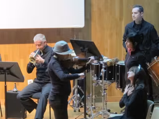 Sus palabras las envuelven los siete instrumentos que tocan los profesores de la OSPA, una mezcla orquestal donde está presente al menos un miembro de cada familia, como observó Leonard Berstein: "Dos cuerdas, dos vientos-madera, dos metales y un percusionista: de este modo se consigue un sonido maravilloso y una gran obra maestra que debemos escuchar".