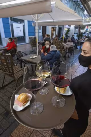 Una camarera se dispone a servir en una terraza de un restaurante de Avilés, Asturias (España), a 14 de diciembre de 2020. - Jorge Peteiro - Europa Press