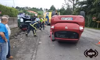 Una vez en la zona, los bomberos procedieron a inmovilizar y extraer a los dos conductores de ambos turismos. En ambos casos se colocó el collarín y con el ferno-ked y la tabla de rescate. A uno de ellos se le extrajo del interior del coche por el lado de la puerta del pasajero, mientras que en el caso del turismo volcado sobre el techo, se sacó al afectado por el portón trasero.
