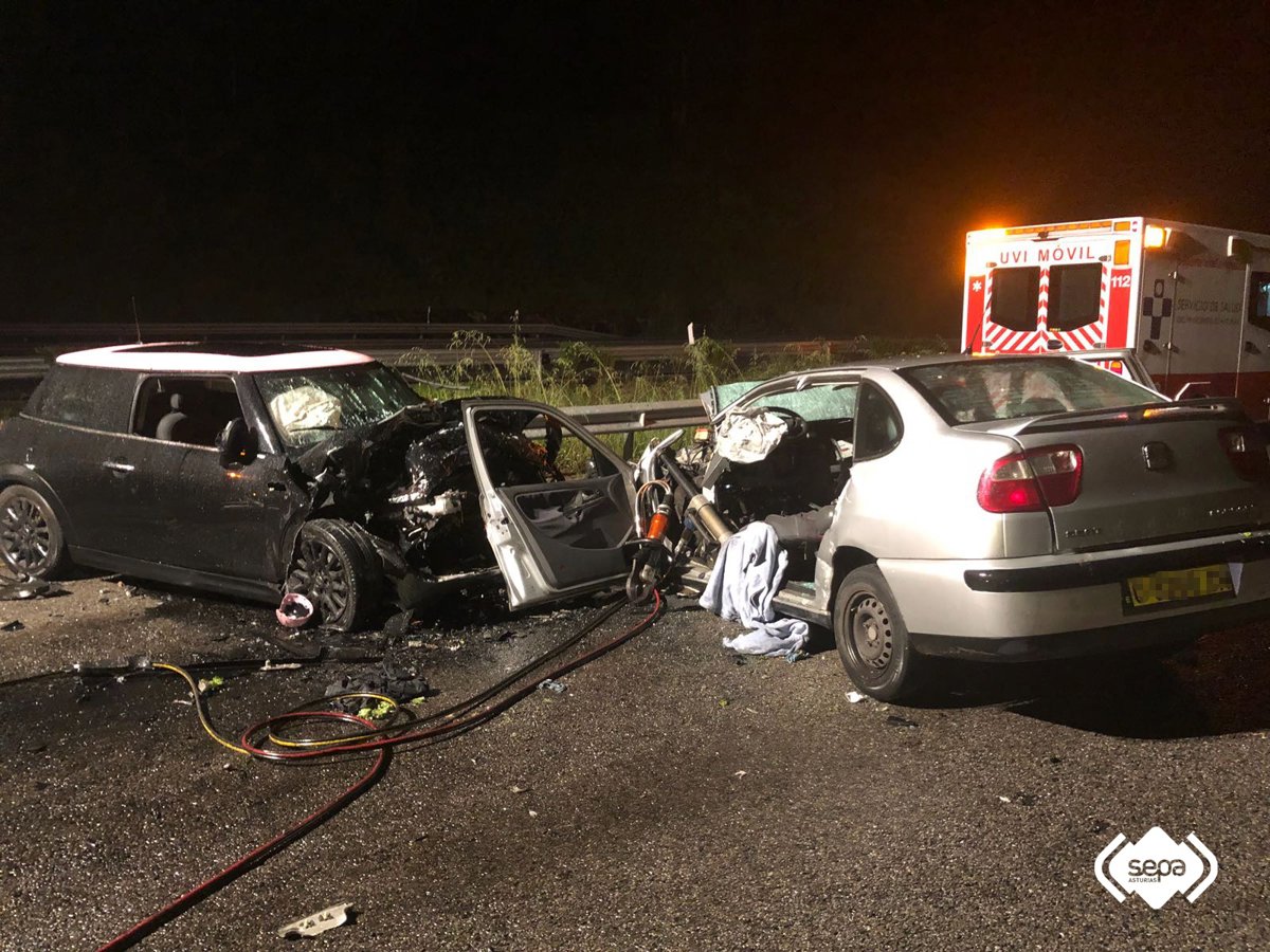 El Centro de Coordinación de Emergencias del 112 Asturias recibió el aviso a las 02.02 horas. Las llamadas iniciales informaban de un vehículo circulando en sentido contrario por la vía. Tan sólo unos minutos después indican que el turismo ha colisionado contra otro coche y al menos, en uno de ellos, hay una persona atrapada.