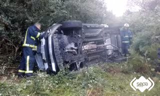 El Centro de Coordinación de Emergencias del 112-Asturias recibió el aviso a las 17.17 horas. En la llamada señalaban que un vehículo se había salido de la vía y había caído a un zarzal, volcado, con dos personas en su interior.