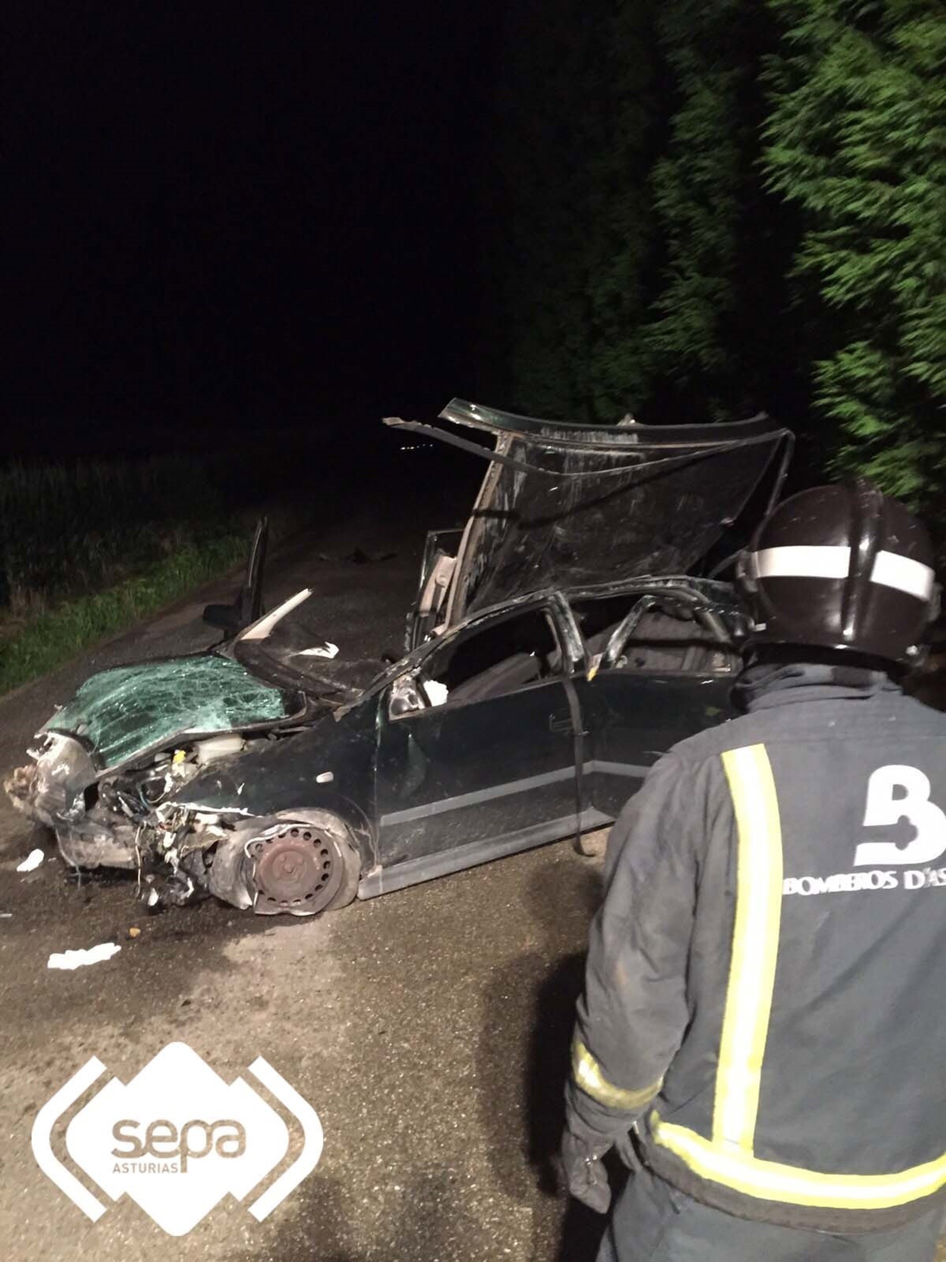 Una vez en la zona, los bomberos se encontraron con un turismo, matrícula 4562 CCP, en el que estaba el conductor del mismo. El acompañante se encontraba fuera del vehículo. Los bomberos procedieron a su excarcelación. Para ello fue preciso cortar los pilares para retirar el techo del automóvil y sacaron al herido, inmovilizado, con el ferno-ked y la tabla de rescate. Los efectivos dieron por finalizada la intervención a su llegada a base, a las 7.53 horas.