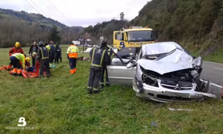 Hasta el lugar del accidente también se desplazó una dotación de Bomberos del SEPA con base en el parque de Pravia. Cuando los bomberos llegaron al lugar el equipo de Atención Primaria ya estaba atendiendo a la mujer que viajaba en el asiento del copiloto. El hombre había salido por sus propios medios del vehículo. Los bomberos colaboraron con el equipo sanitario en la evacuación del la afectada del vehículo. La evacuaron, con la tabla de rescate, por la parte de atrás del turismo.