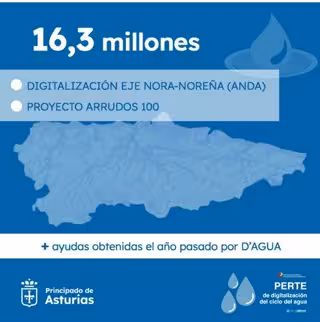 Los proyectos Arrudos 100 y ANDA (Aglomeración del Nora-Digitalización del Agua), en los que participan el Principado, varios ayuntamientos, empresas municipales y el Consorcio de Aguas, han obtenido 16.292.520 euros en fondos europeos del Proyecto Estratégico para la Recuperación y Transformación Económica (Perte) de Digitalización del Ciclo del Agua.