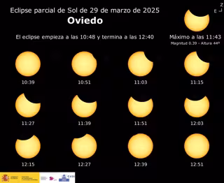 Durante la mañana del sábado 29 de marzo de 2025 será posible observar desde España un eclipse parcial de Sol. Aunque parece que el tiempo no va a ponerlo fácil en Asturias, son muchas las iniciativas que en el Principado pretenden acercar este fenómeno a los más curiosos.