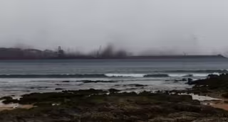 En los 38 segundos que dura el vídeo se puede comprobar cómo el viento levanta una serie de nubes negras en la zona del puerto, ante la mirada de curiosos y paseantes que contemplan la escena desde el Muro. No es la primera vez que se produce un episodio de estas características.