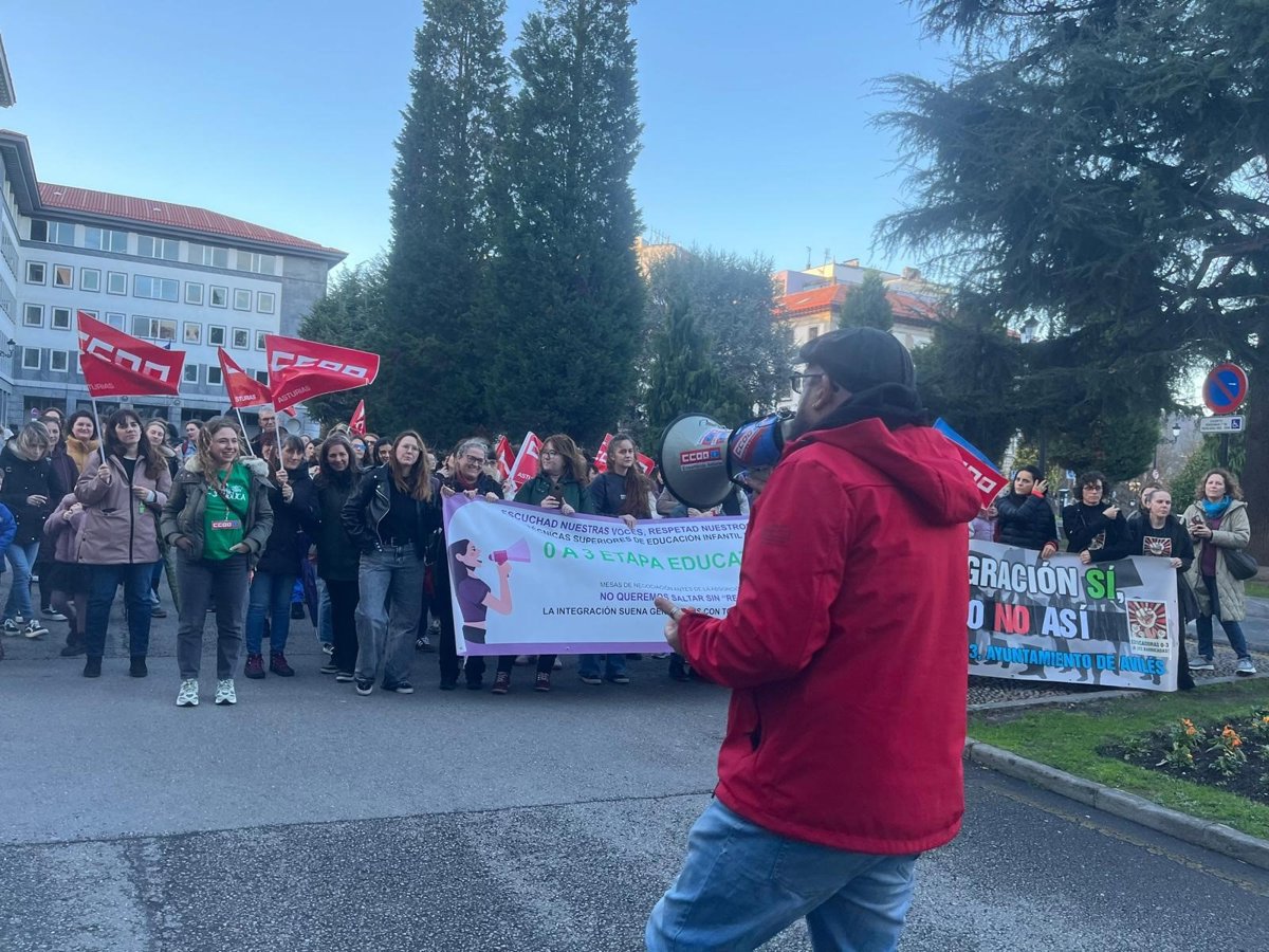 Las trabajadoras de la red pública de escuelas infantiles de 0 a 3 años se han vuelto a concentrar este jueves en la plaza de España de Oviedo, ante la sede de la Consejería de Educación, para reclamar "dignidad para el colectivo y una educación de calidad para los niños, las niñas y sus familias".