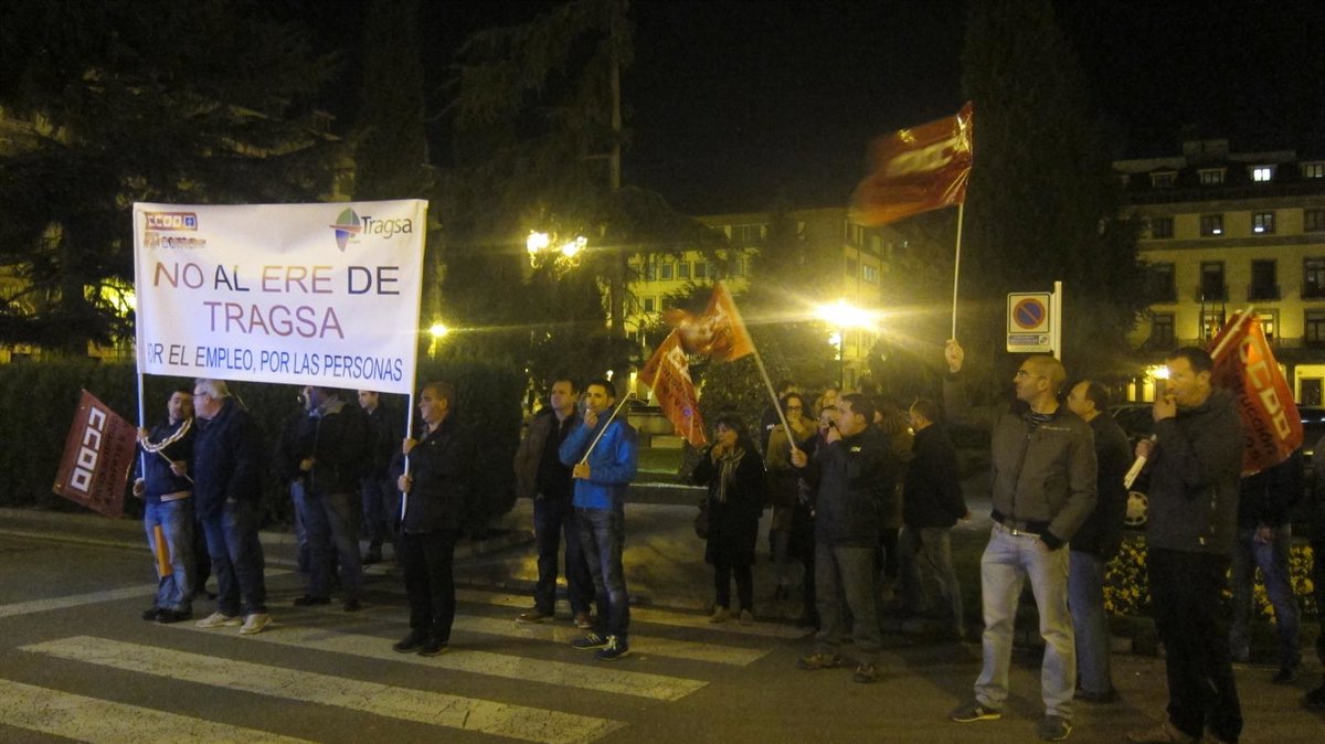 Los trabajadores han mostrado una pancarta con el lema 'No al Ere de Tragsa' y han cortado parte de la calzada que pasa ante el edificio de la Delegación de Gobierno.