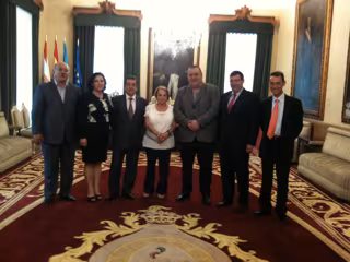 La alcaldesa de Gijón, Paz Fernández Felgueroso, ha recibido a esta delegación rumana formada por el Vice-Alcalde del Ayuntamiento de Bucarest, la Jefa Oficina de Proyectos Europeos y el Jefe de programas de financiación de UE para BNS.