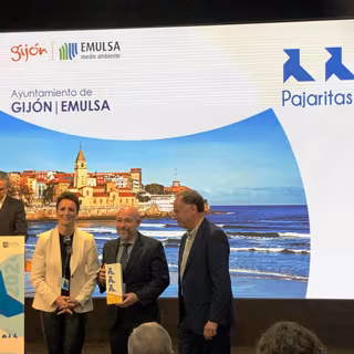 El concejal de Medio Ambiente y Sostenibilidad del Ayuntamiento de Gijón, Rodrigo Pintueles, ha recogido este jueves las tres Pajaritas Azules concedidas a Emulsa, sociedad municipal de la que es presidente, por el trabajo desarrollado para impulsar el reciclaje de papel y cartón.