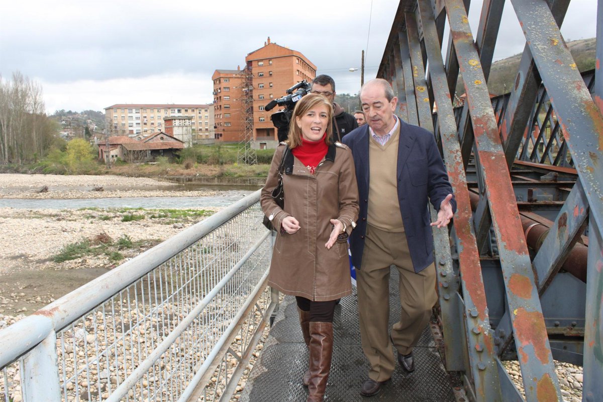 La pasarela, en mal estado y adosada a un viejo puente ferroviario aún en peores condiciones, lleva años sin mantenimiento, y su arreglo es una constante demanda vecinal en la zona. Pérez-Espinosa, acompañada por el concejal y diputado nacional Jaime Reinares, y por los alcaldes pedáneos de Trubia y Soto, Víctor Alonso y José Manuel Suárez, respectivamente, ha criticado "contínua dejación del Gobierno socialista de sus obligaciones" y ha reivindicado el arreglo inmediato del puente.