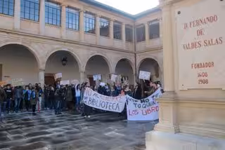La protesta contra'l zarru de la biblioteca del edificiu polivalente de la Universidá d'Uviéu nel Campus de Xixón llegó esti xueves al Edificiu Históricu, qu'alluga'l rectoráu.