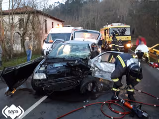 Una vez en el lugar, los bomberos procedieron a excarcelar al conductor de uno de los turismos accidentados. Para ello fue necesario retirar la puerta y el pilar central del coche del lado del conductor. Tras inmovilizarle colocándole el collarín, se procedió a su extracción del interior del automóvil con la tabla de rescate. Los ocupantes del otro vehículo ya estaban fuera del mismo.