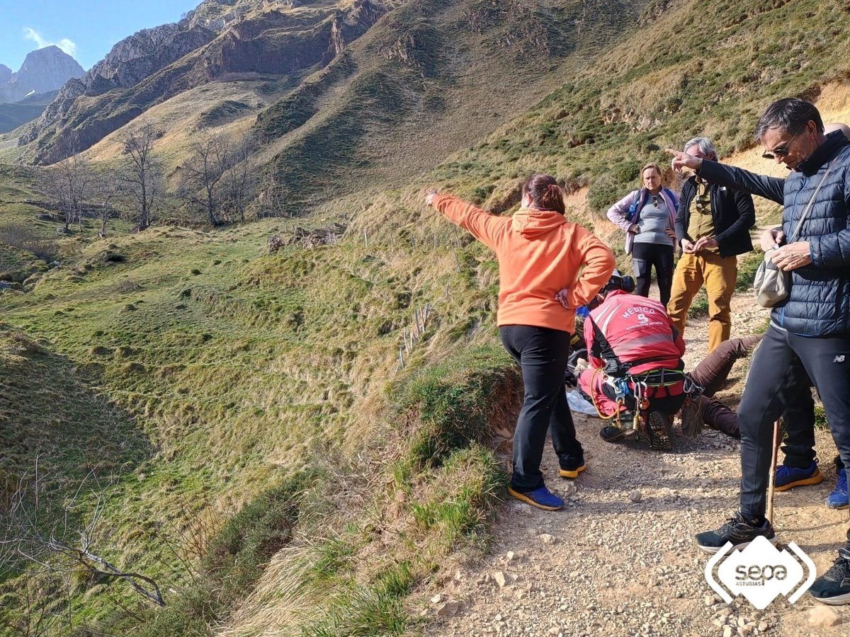 El Centro de Coordinación de Emergencias del 112 Asturias recibió el aviso a las 14.59 horas. En la llamada se indicaba que una persona, de un grupo de cuatro, había tropezado y se había lesionado un tobillo. No podía continuar caminando. Se encontraban a nos 200 metros de la localidad de Tuiza.