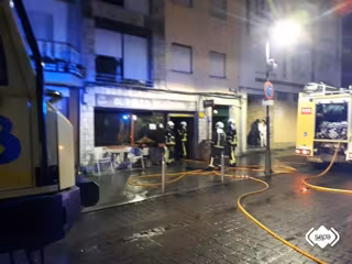 El local resultó afectado por el humo y el calor. No hubo que lamentar daños personales. El fuego se declaró en el bajo de un edificio de tres alturas.