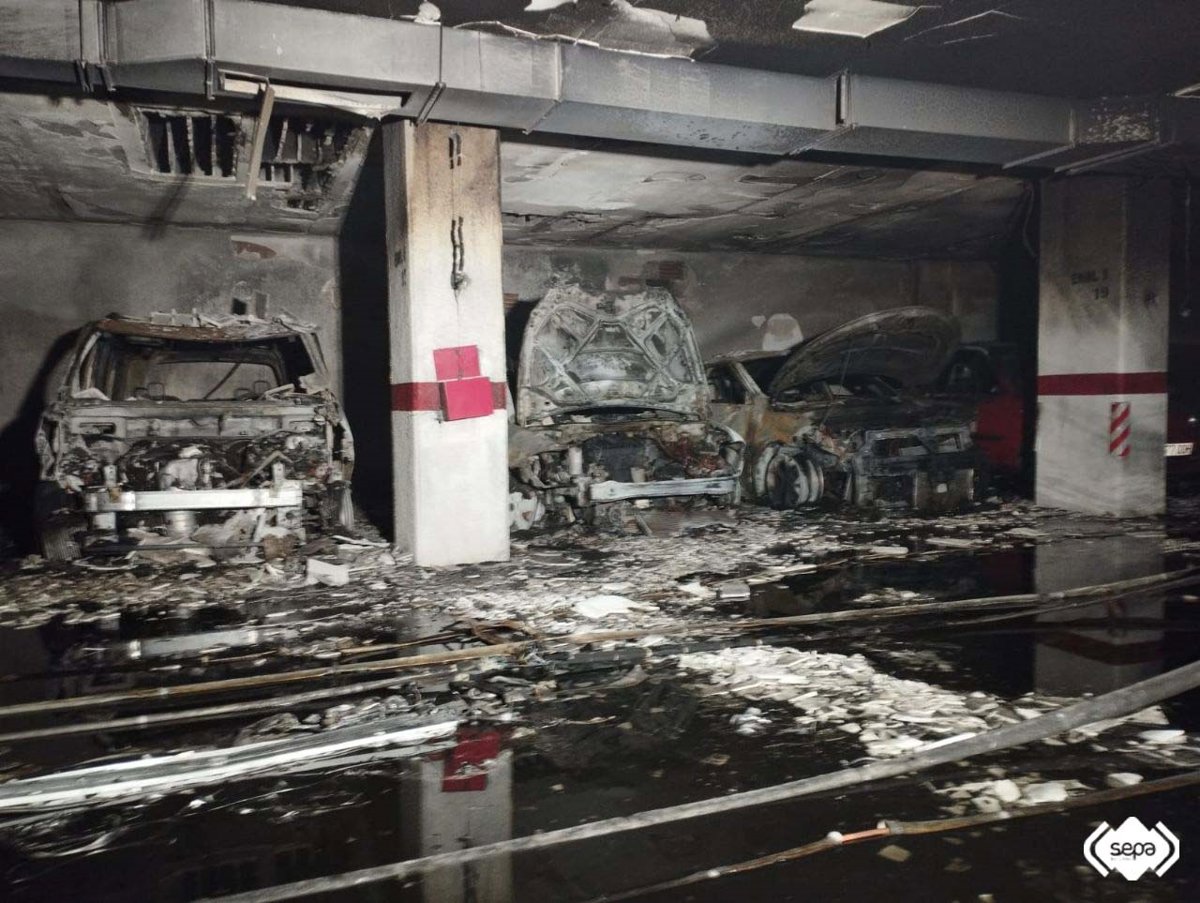 Efectivos de Bomberos del Servicio de Emergencias del Principado de Asturias (SEPA), con base en los parques de Avilés, Pravia y La Morgal, junto al Jefe de Zona Centro Oeste de Bomberos, han sofocado el incendio declarado en un garaje en la calle Fuero en Avilés. El incendio ha afectado a ocho vehículos, cinco han resultado totalmente calcinados y otros tres presentan daños. El incendio también ha causado daños en el techo del estacionamiento.