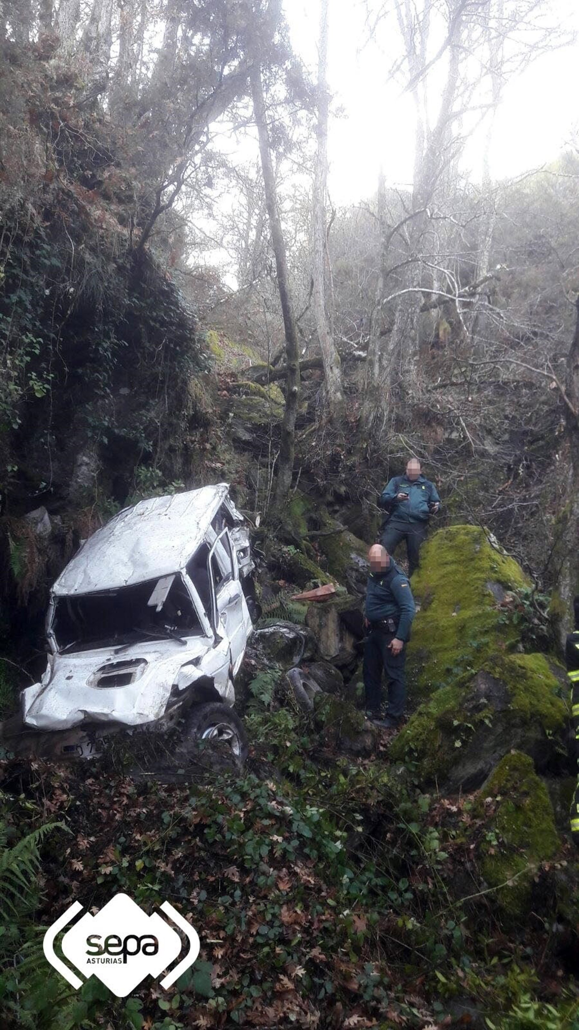 Los restos mortales del fallecido tuvieron que ser evacuados del lugar donde cayó el vehículo por efectivos de Bomberos del Servicio de Emergencias del Principado de Asturias (SEPA), con base en los parques de Ibias y Cangas del Narcea.
