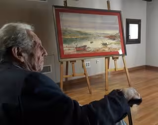Humberto Alonso, asistió a la presentación del encuentro, y se mostró muy ilusionado por la cita y también en su inauguración donde, por sorpresa, recibió el homenaje del Ayuntamiento de Villaviciosa y de sus compañeros acuarelistas del Grupo Niebla.