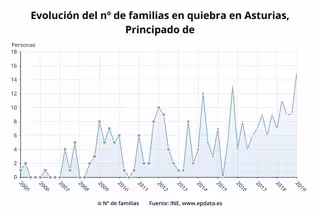 Las familias y empresas que se declararon en concurso de acreedores (suspensión de pagos y quiebras) ante la imposibilidad de afrontar sus pagos y deudas en el Principado de Asturias ascendió a 33 en el primer trimestre del año, según el Instituto Nacional de Estadística (INE).