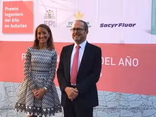 El ingeniero de minas, presidente del Grupo Isastur y vicepresidente de Femetal, Fernando Alonso Cuervo, y la ingeniera industrial y responsable de logística de Toyota Europa, Lucía García-Linares, han recibido este lunes el VI Premio Ingeniero del Año en Asturias en la categoría 'Gran Trayectoria Profesional' y 'Proyección de Futuro', respectivamente.