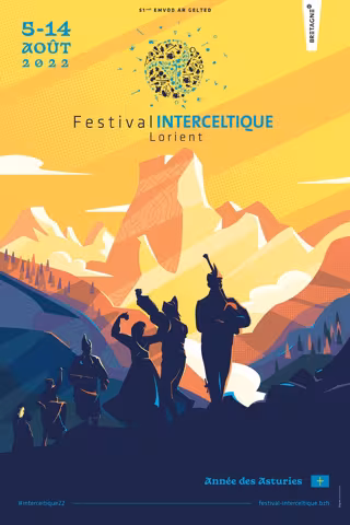 Por eso, el cartel muestra los paisajes montañosos de Asturias, con los Picos de Europa y el Picu Urriellu como fondo, y donde destacan las siluetas de una banda de gaitas y de bailarines. "Una paleta de colores luminosos para evocar la calidez de la nación celta más meridiona", han indicado a través de nota de prensa, para señalar que el azul "que se hace eco de la bandera asturiana".