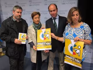 El presidente de la Unión de Comerciantes, David Argüelles, ha presentado la iniciativa este martes, en la sala de prensa del Ayuntamiento, acompañado del director del Festival, Nacho Carballo, la directora del Teatro Jovellanos, Teresa Sánchez, y la gerente de la Unión de Comerciantes, Carmen Moreno.