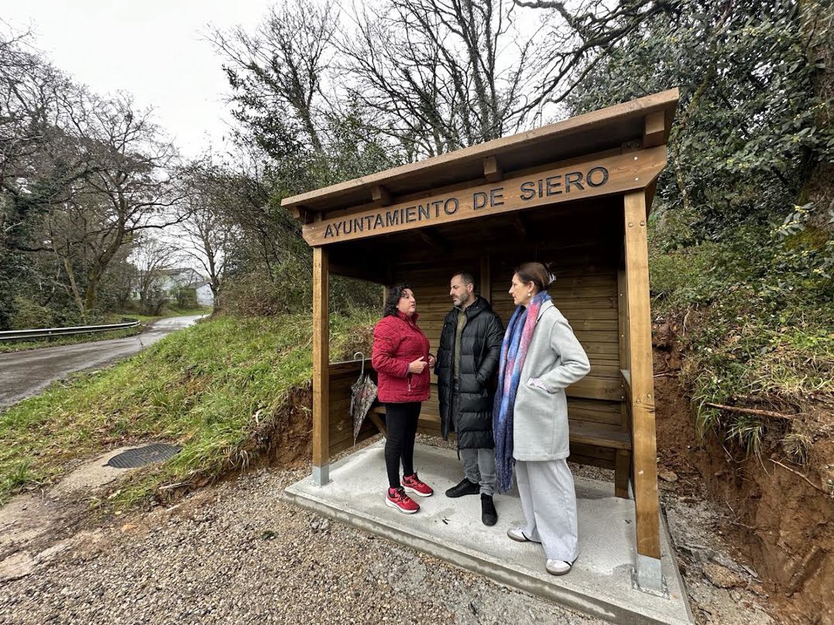 El alcalde de Siero, Ángel García, y la concejala de Comercio y Hostelería, Movilidad, y Transporte Público, Patricia Antuña González, han visitado este viernes una de las nuevas marquesinas de autobús para la zona rural que se han instalado recientemente.