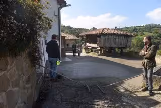 El alcalde de Siero, Ángel García, y el concejal de Infraestructuras en el Medio Rural, Alejandro Villa, han visitado este jueves las obras de pavimentación de un camino en El Plano, Santiago de Arenas. Los trabajos, realizados con medios propios, han supuesto un coste de 3.000 euros.