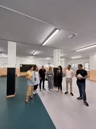 El alcalde de Siero, Ángel García, ha visitado este miércoles el fin de las obras de renovación del pavimento de la sala polivalente del Colegio Público Maestros Arregui.