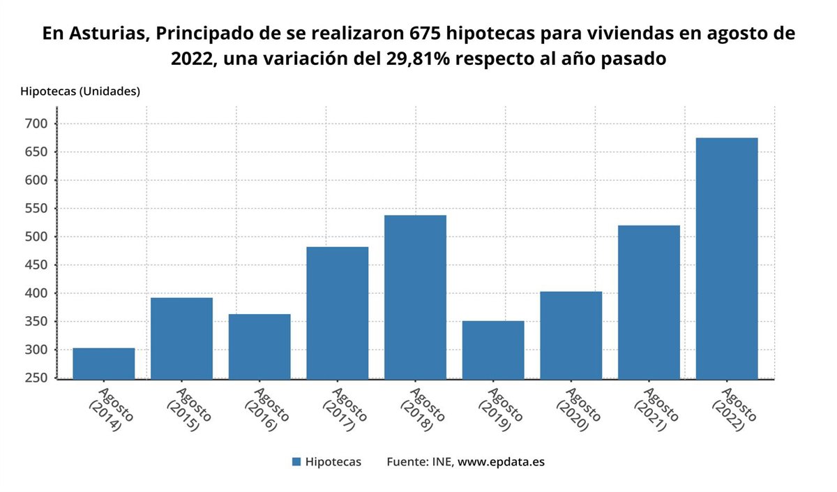 Evolución de la firma de hipotecas en Asturias hasta agosto de 2022. - EPDATA