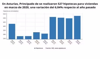 El número de hipotecas constituidas sobre viviendas inscritas en los registros de la propiedad se situó en 527 el pasado mes de marzo en el Principado de Asturias, una cifra un 24,1% inferior a la registrada en el mismo mes de 2019, según información del Instituto Nacional de Estadística (INE).