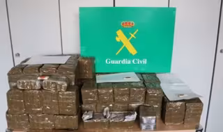 A la salida del establecimiento continuaron adoptando medidas de seguridad por la misma calle. Esto motivó la intervención de la Guardia Civil, que al registrar el vehículo y, a plena vista, localizaron entre el asiento del conductor y los asientos traseros 10 paquetes de cinta adhesiva de color marrón de aproximadamente un kilogramo de resina de cannabis cada uno.