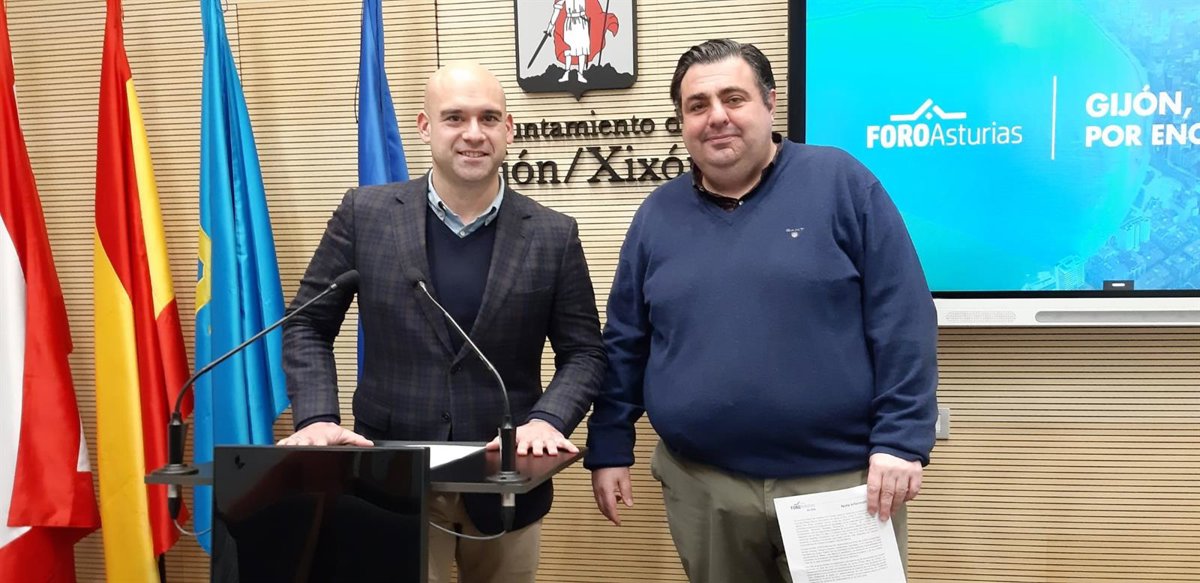 El Portavoz Del Grupo Municipal De Foro Asturias En El Ayuntamiento De Gijón, Jesús Martínez Salvador, En Rueda De Prensa En El Consistorio Gijonés, Acompañado Del Edil De Su Grupo Pelayo Barcia - EUROPA PRESS