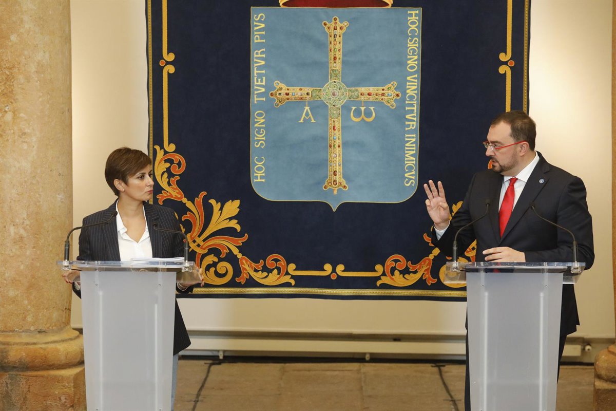 La ministra Portavoz y de Política Territorial, Isabel Rodríguez y el presidente del Principado de Asturias, Adrián Barbón. - Jorge Peteiro - Europa Press