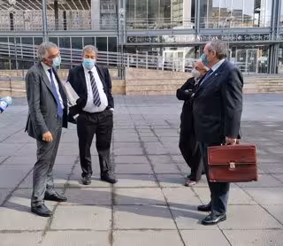 Archivo - Francisco Álvarez Cascos en la entrada a los juzgados de Oviedo acompañado de su abogado. - EUROPA PRESS - Archivo