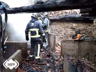 Efectivos de Bomberos del Servicio de Emergencias del Principado de Asturias (SEPA) han extinguido el fuego declarado en la madrugada de este jueves en una panera en Cornas, Tineo.