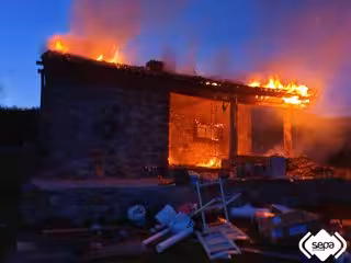 Por cercanía, se solicitó la colaboración de efectivos de Bomberos del SEPA. Según se alertaba, estaba quemando una cabaña aislada, de piedra y dos plantas. La sala del 112 del SEPA movilizó a seis efectivos de bomberos, de los parques de Caso y San Martín del Rey Aurelio, que se trasladaron con dos vehículos primera salida.