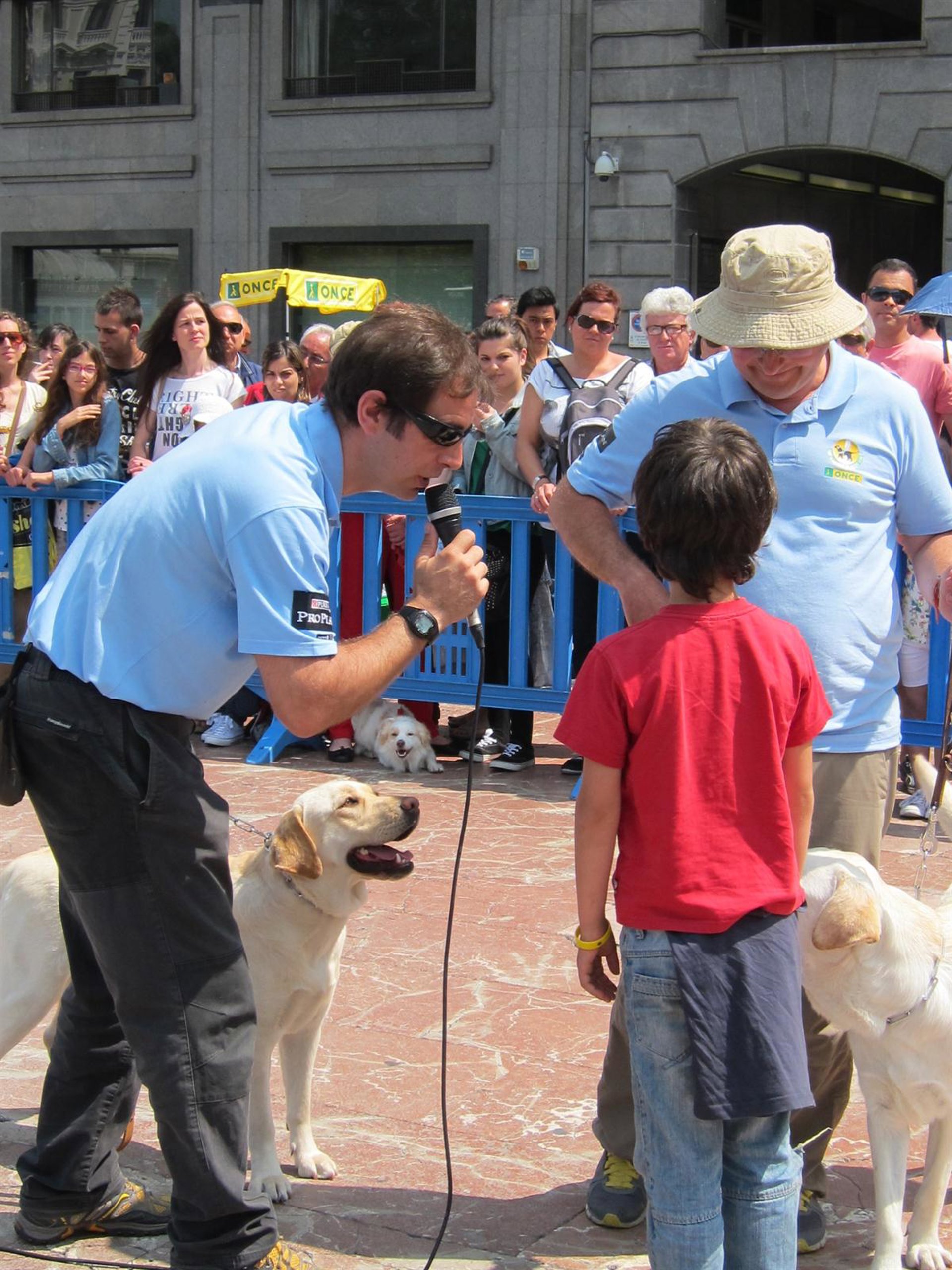 La Fundación de la ONCE de Perros Guía ha realizado, este jueves, una exhibición para los ovetenses en la Plaza de la Escandalera de Oviedo. Esta asociación ha decidido traer a dos de sus perros guía para mostrar la rutina de entrenamiento que llevan a cabo en su escuela de Madrid, así como concienciar a los ciudadanos sobre su labor.