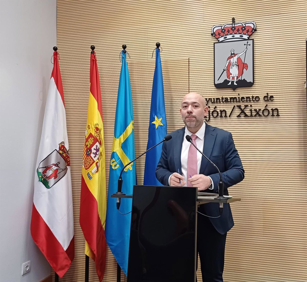 Archivo - El concejal de Medio Ambiente y Sostenibilidad del Ayuntamiento de Gijón, Rodrigo Pintueles (PP), en rueda de prensa en el Ayuntamiento gijonés. - EUROPA PRESS - Archivo