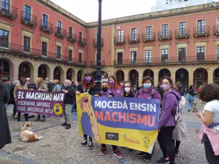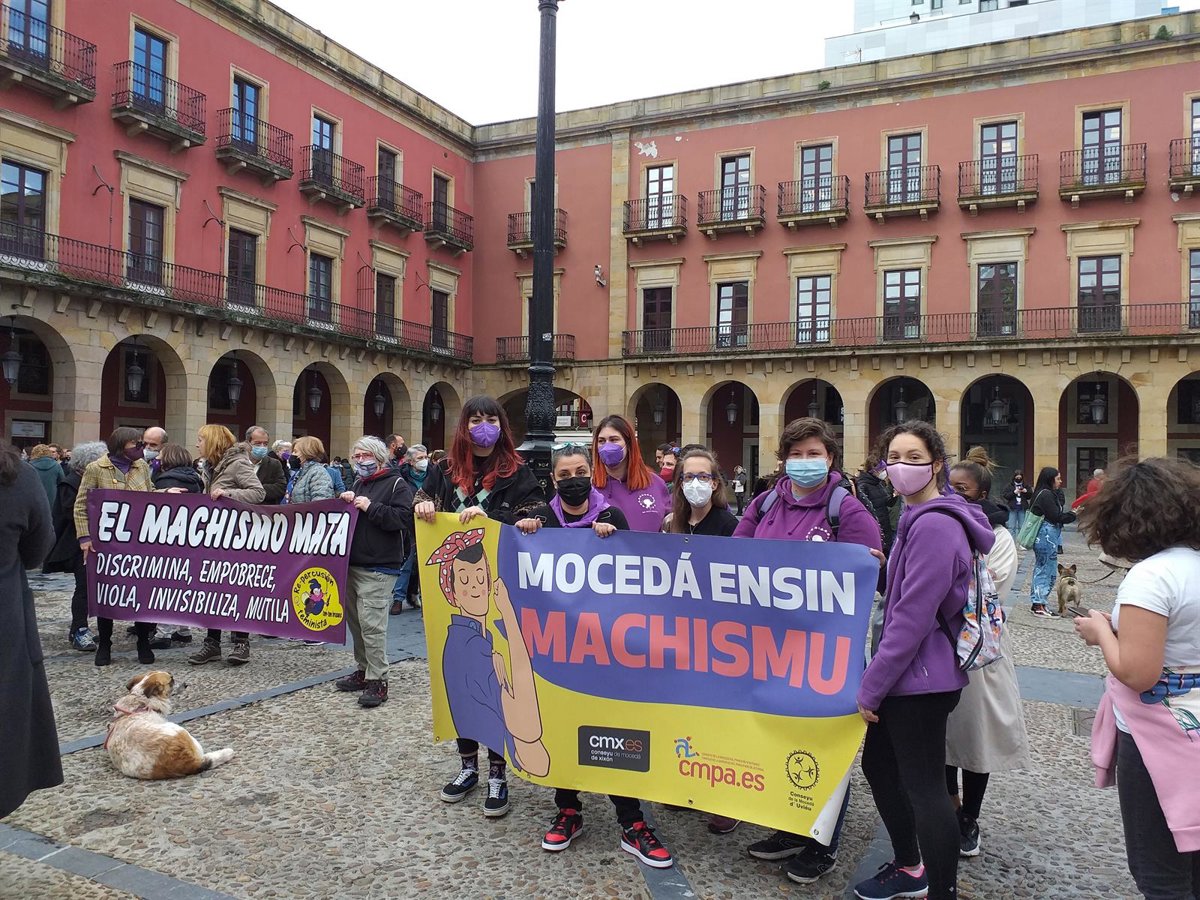 "Ni una menos, vivas nos queremos" o "De Norte a Sur, de Este a Oeste, la lucha sigue, cueste lo que cueste", han sido algunos de los vítores que se han podido escuchar, como previa a la gran manifestación por el 8M prevista para la tarde de este martes en Gijón.