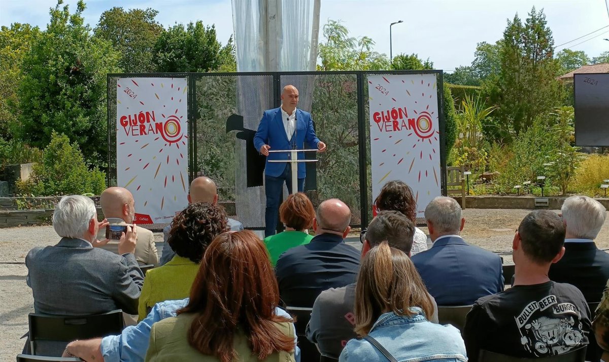 Intervención del concejal de Festejos del Ayuntamiento de Gijón, Jesús Martínez Salvador, durante la presentación de la programación 'Gijón Verano', en el Jardín Botánico Atlántico. - EUROPA PRESS