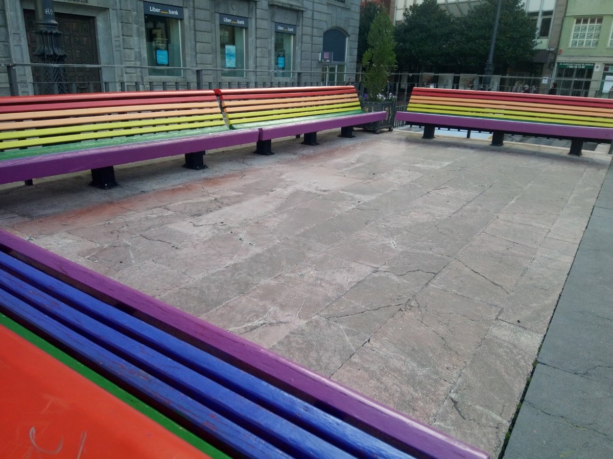 Archivo - Imagen de archivo de los bancos arcoíris en La Escandalera - EUROPA PRESS - Archivo