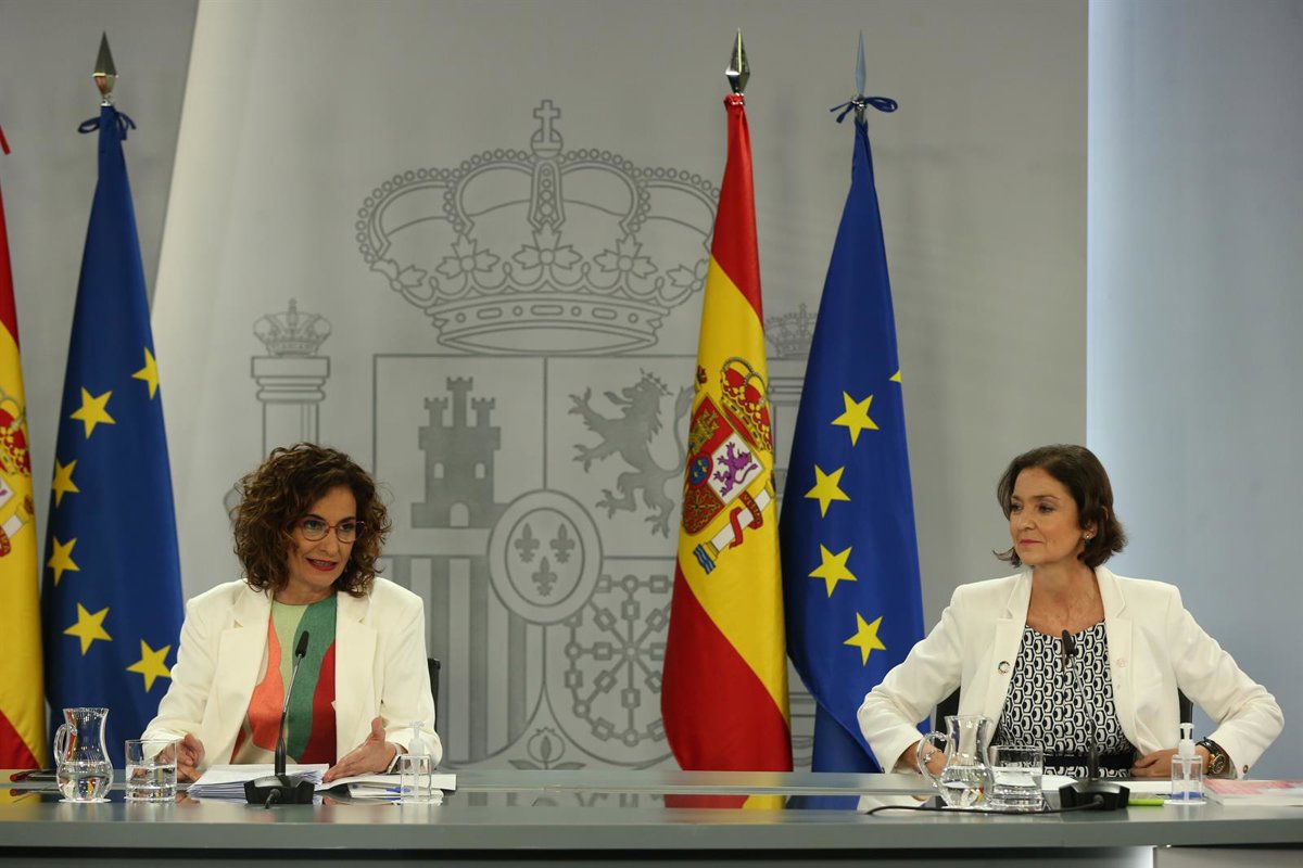 La ministra Portavoz y de Hacienda, María Jesús Montero; y la ministra de Industria, Comercio y Turismo, Reyes Maroto, comparecen en rueda de prensa posterior al Consejo de Ministros celebrado en Moncloa, a 11 de mayo de 2021 - C.De Luca.POOL/Europa Press - Europa Press