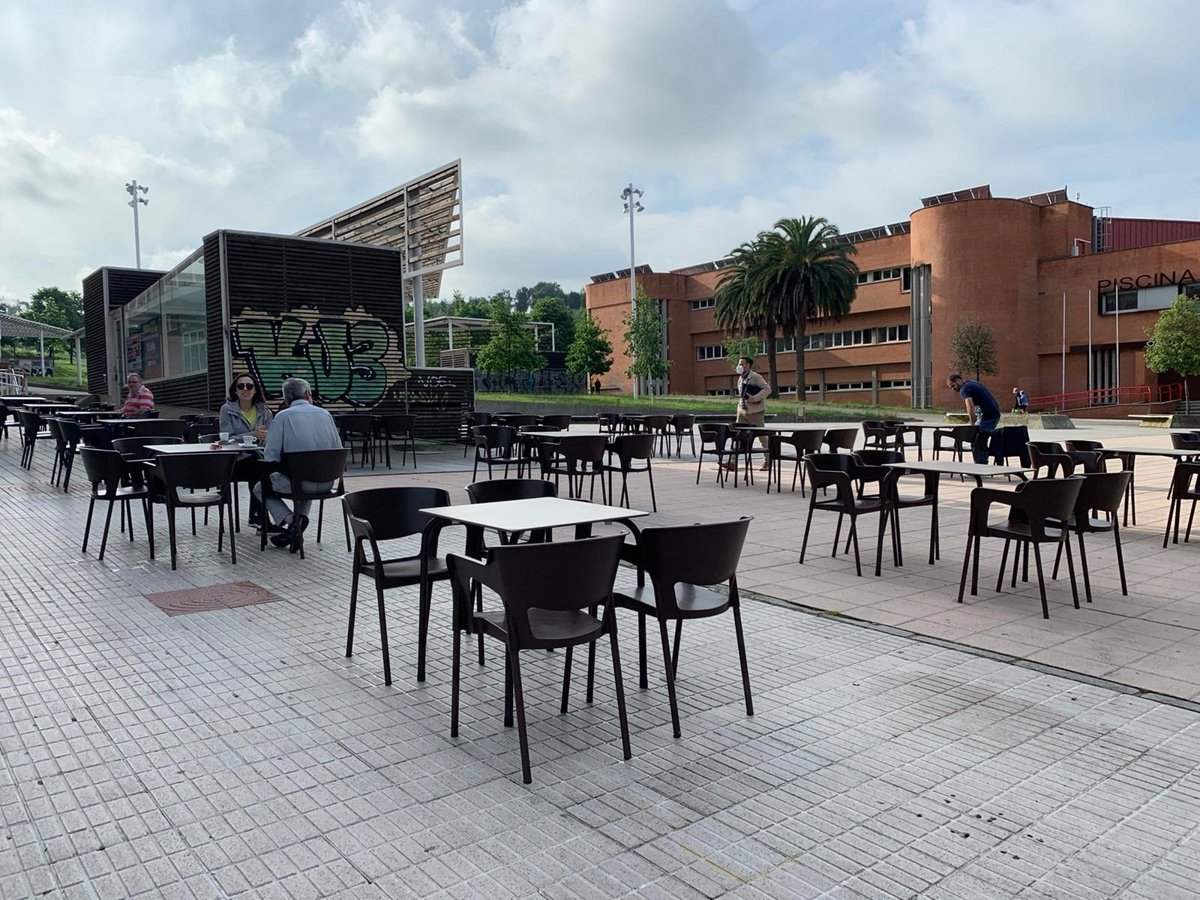 Gente en una terraza hostelera de Gijón el primer día que abre desde que se decretó el Estado de Alarma - EUROPA PRESS