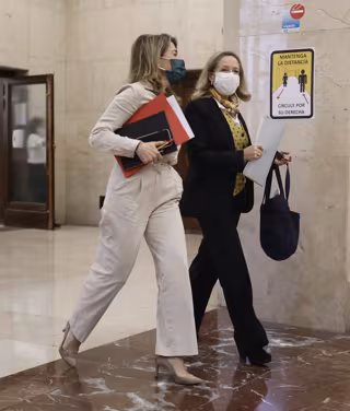 La ministra de Transportes, Movilidad y Agenda Urbana, Raquel Sánchez , y la vicepresidenta primera del Gobierno y ministra de Asuntos Económicos y Transformación Digital, Nadia Calviño - Eduardo Parra - Europa Press
