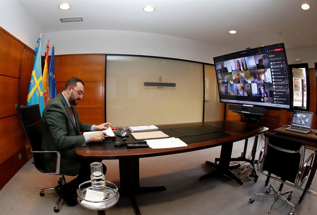 El presidente del Principado, Adrián Barbón, en la reunión telemática de Consejo de Gobierno - GOBIERNO DE ASTURIAS