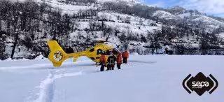 Esta mañana el Grupo de Rescate ha sobrevolado, a bordo del helicóptero medicalizado de Bomberos de Asturias, la zona del alud de nieve producido en Aller el pasado 1 de enero, y que arrastró a dos trabajadores de conservación de carreteras del Principado.