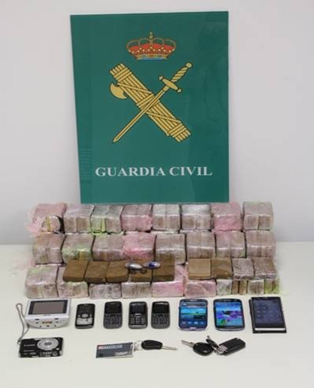 Se han intervenido tres vehículos de gama media, ocho teléfonos móviles (la mayoría de ellos válidos para utilizar dos tarjetas a la vez), 1.340 euros en metálico, además de 20.433 gramos de Hachís, con un valor aproximado de 30.650 Euros.